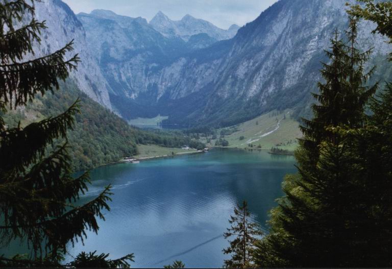 Blick über den Königssee nach Südosten. Im Hintergrund ist der Obersee zu sehen.