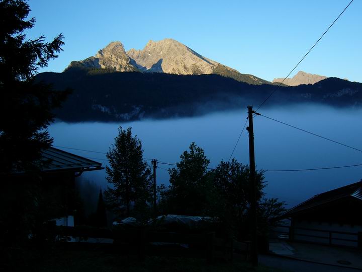 Unterhalb des Hinterbrandkopfes hat man am frühen Morgen (ca. 7.15 Uhr) diesen reizvollen Blick hinüber zum Watzmann.