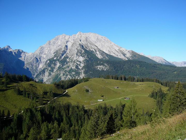 Blick aus westlicher Richtung auf den Watzmann. Darunter die Königsbachalm.