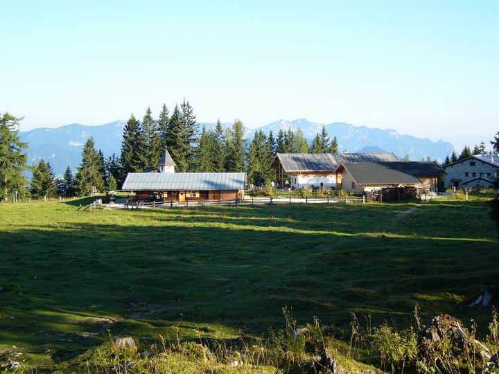 Die Kühroint-Alm, dahinter das Lattengebirge.