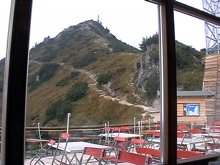 Blick auf den Jenner-Gipfel von der Bergstation der Jennerbahn. Der Gipfel liegt etwa 70m oberhalb der Station.